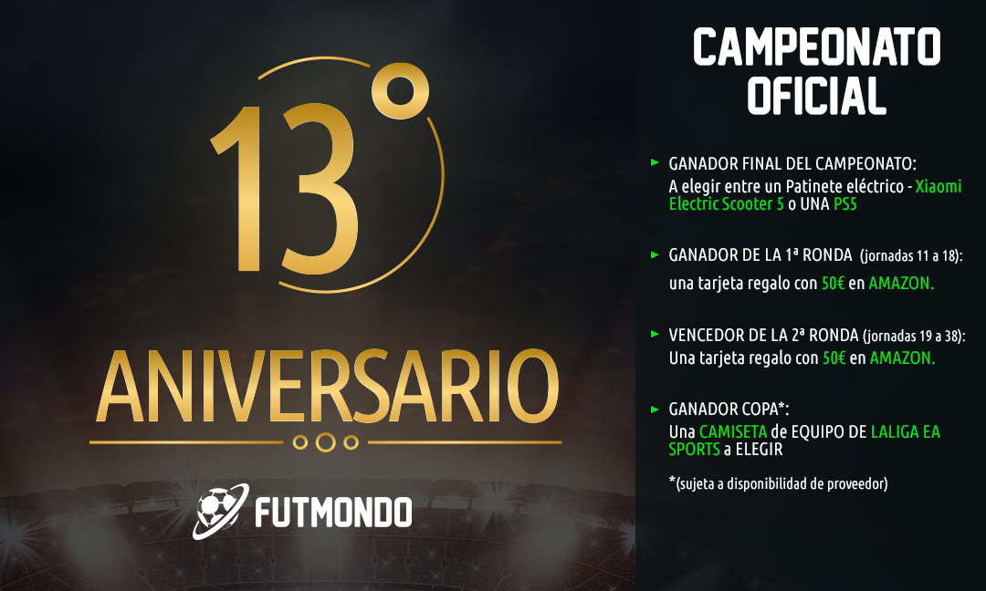 ¿Preparado para luchar por ir superando los retos planteados y luchar por llevarte algún premio? ¡Arranca el 13º ANIVERSARIO FUTMONDO!